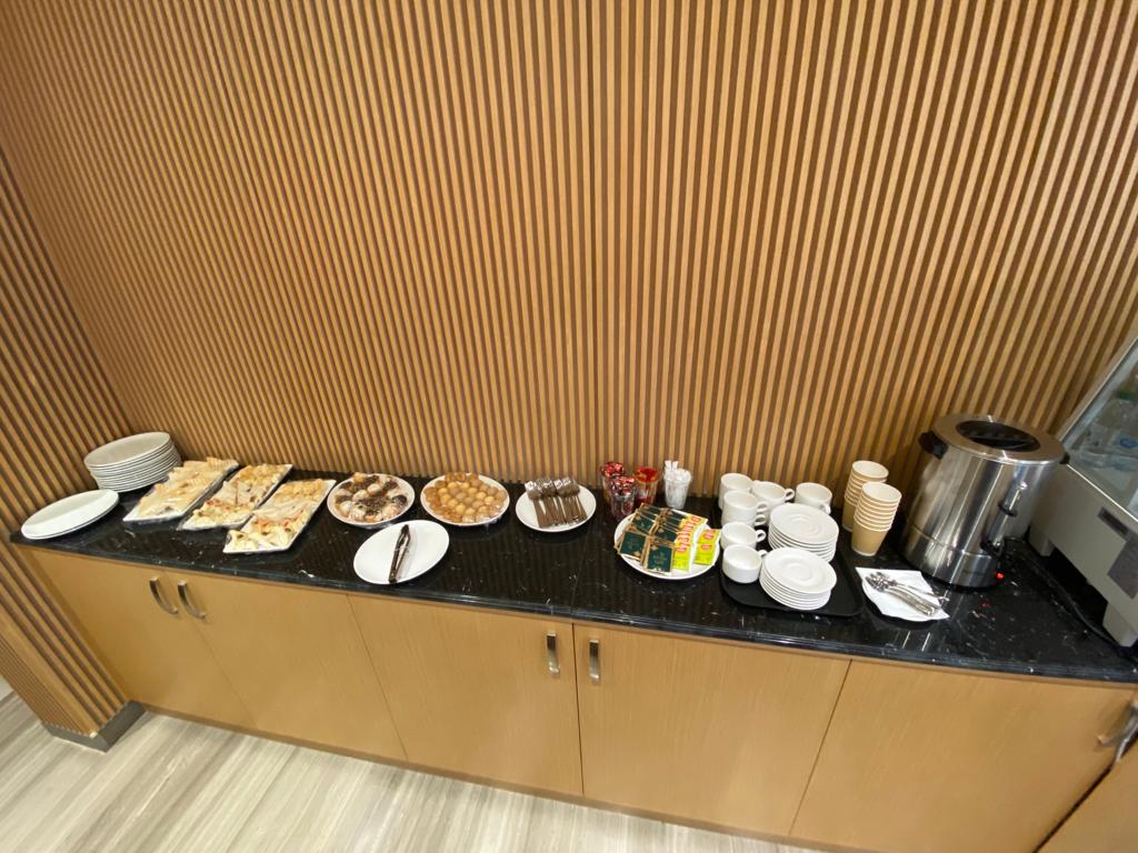 قاعة اجتماعات مجهزة بوسائل عرض وماكينة طباعة و واي فاي سريع ويتوفر بها المشروبات الساخنه والباردة