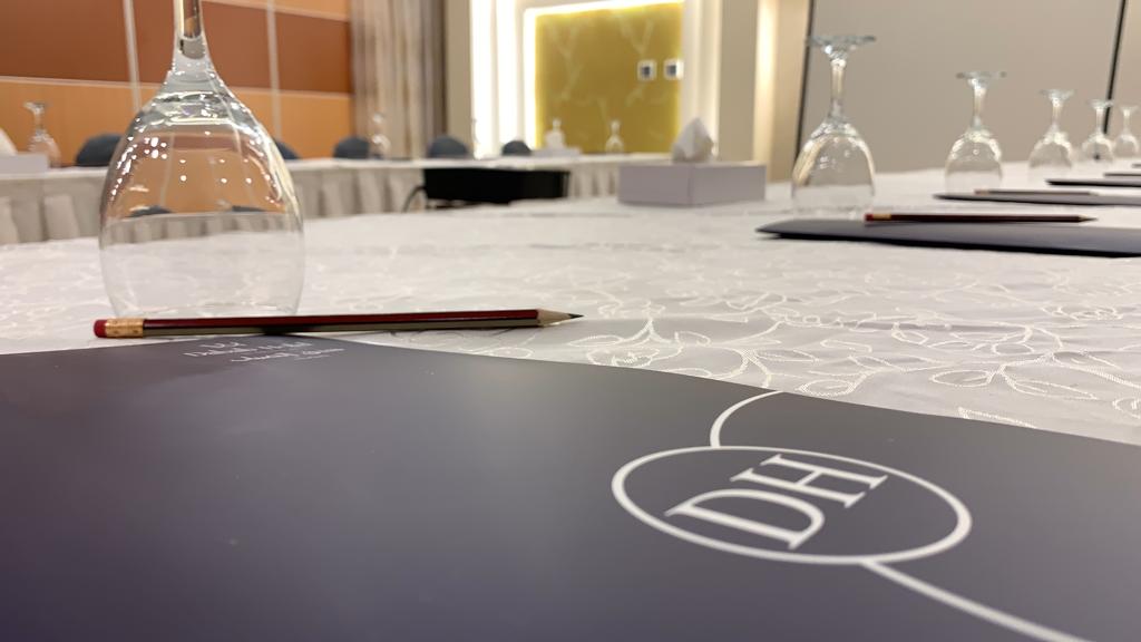 Full-service meeting room (projector-screen-pens-notebook-internet-flip-chart-microphone-headphones-water) There are more than one shape for tables and chairs (circular table-table with U-table in rows) and single chairs